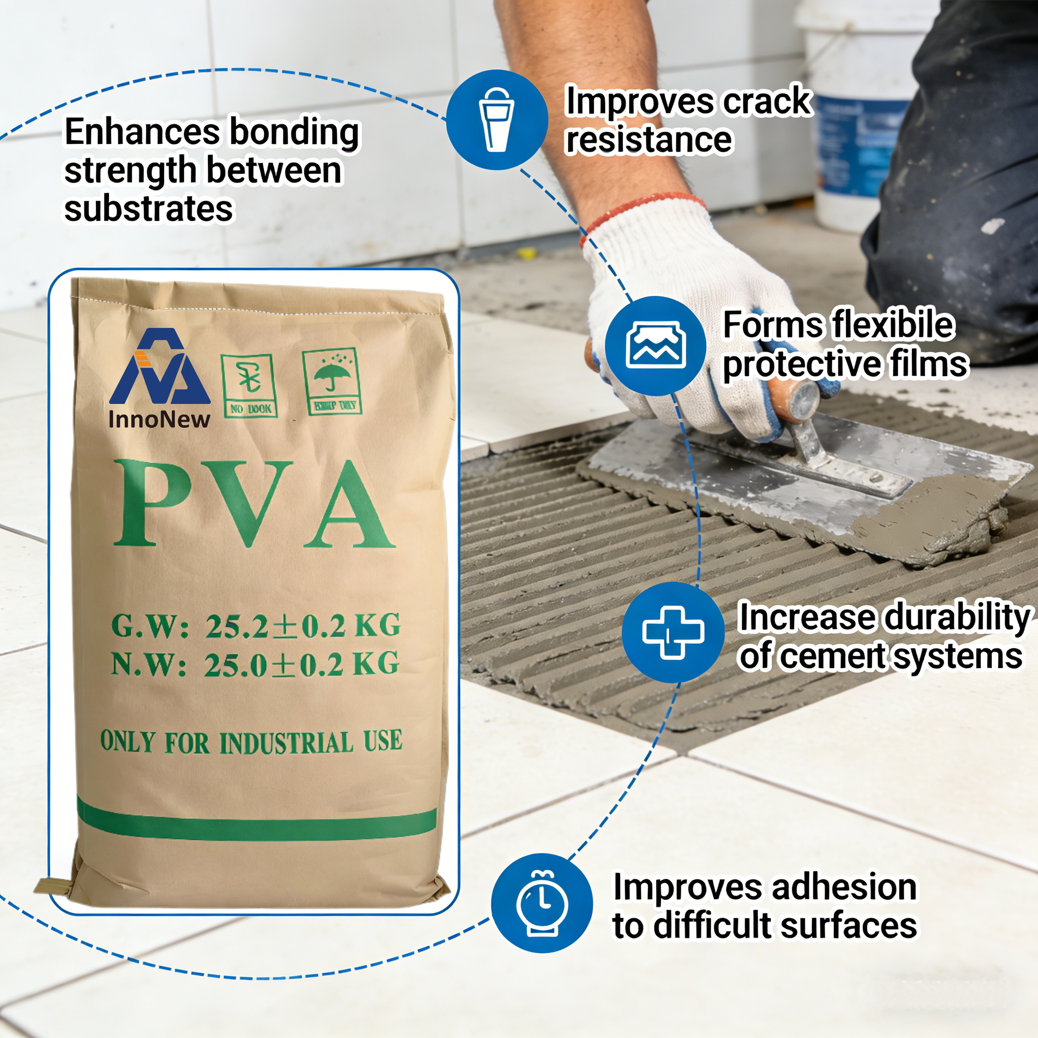 At Hebei InnoNew Material Technology Co., Ltd., we provide a complete range of high-performance construction chemical additives, designed for cement-based systems, dry mix mortar, concrete, and specialty building materials.